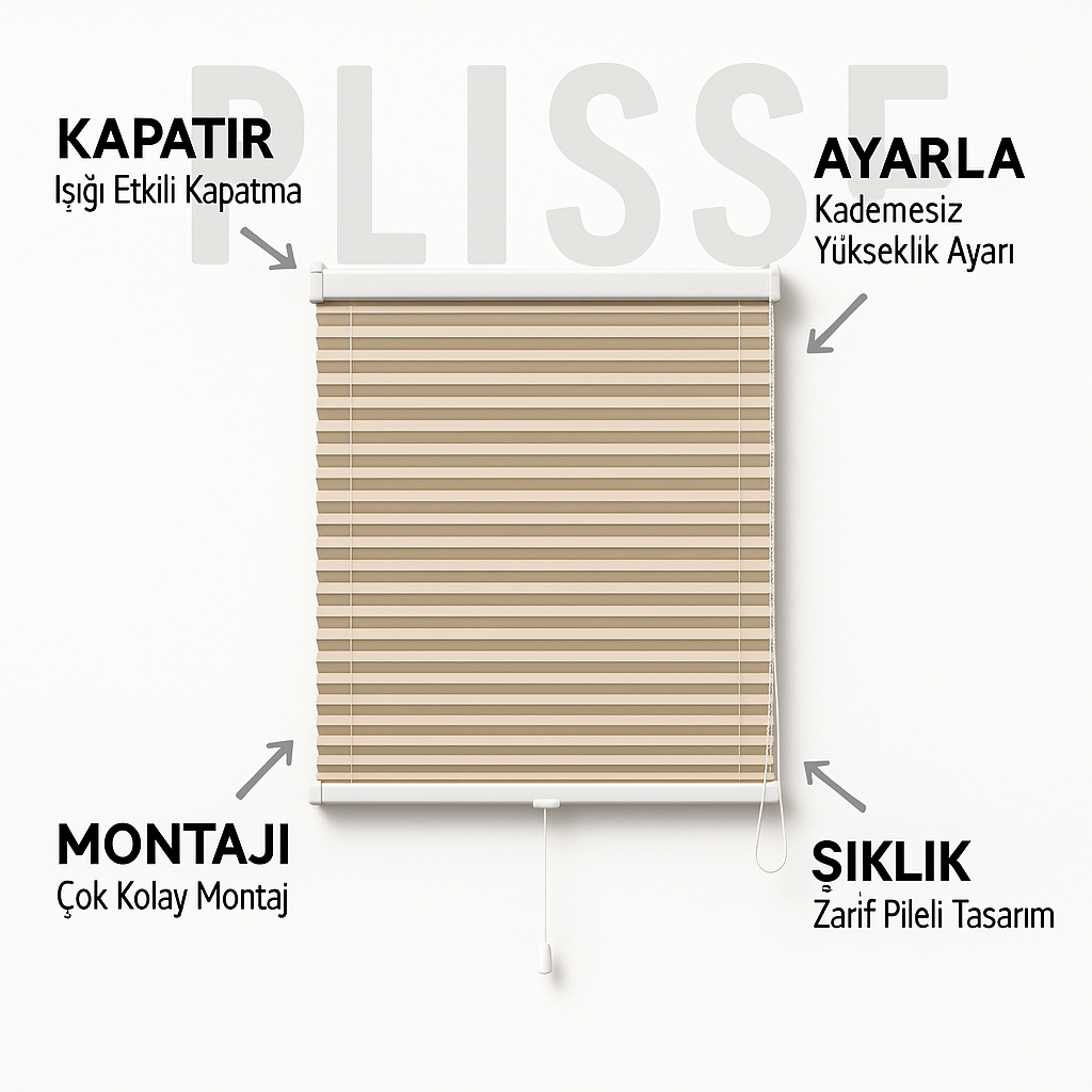 Mastro Plisse, estetik ve fonksiyonelliği bir araya getiren plisse perde ve güneş koruma sistemlerinde Türkiye nin önde gelen markalarından biridir. Kurucularımızın sektör tecrübesi ve teknolojiye verdiğimiz öncelik sayesinde, 2022 yılından bu yana hem ev hem de ticari projelerde kullanıcıların beklentilerini aşan çözümler üretiyoruz. Ürün portföyümüzde yer alan manuel, zincir mekanizmalı ve motorlu plisse sistemlerimiz; yüksek UV koruması, kolay montaj, sessiz çalışma ve uzun ömürlü tasarımıyla dikkat çeker. Situ & dış mekan uygulamalarındaki deneyimimiz ve güçlü Ar-Ge altyapımız sayesinde, müşterilerimize ölçüye özel üretim, hızlı teslimat ve kesintisiz satış sonrası destek sunuyoruz.